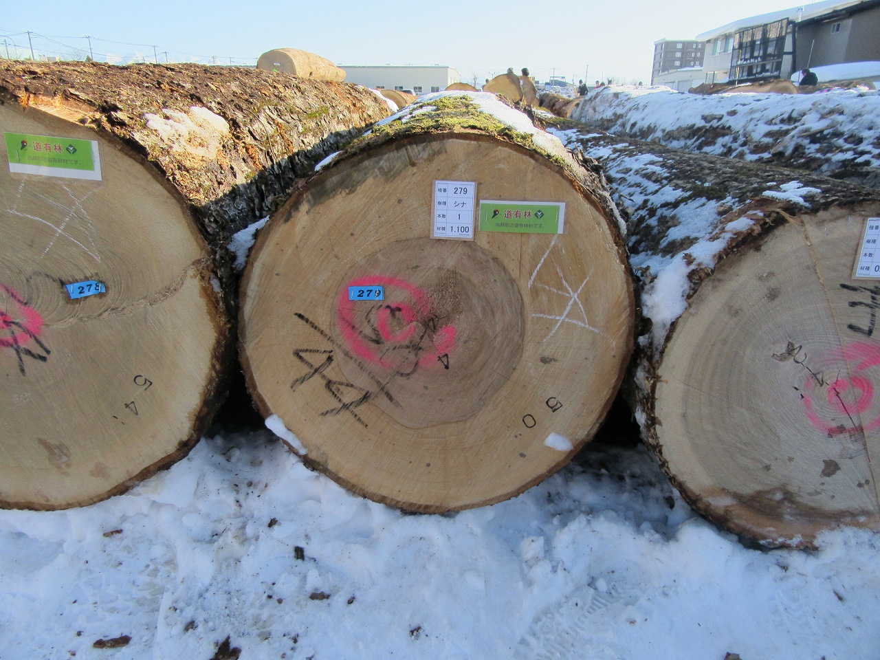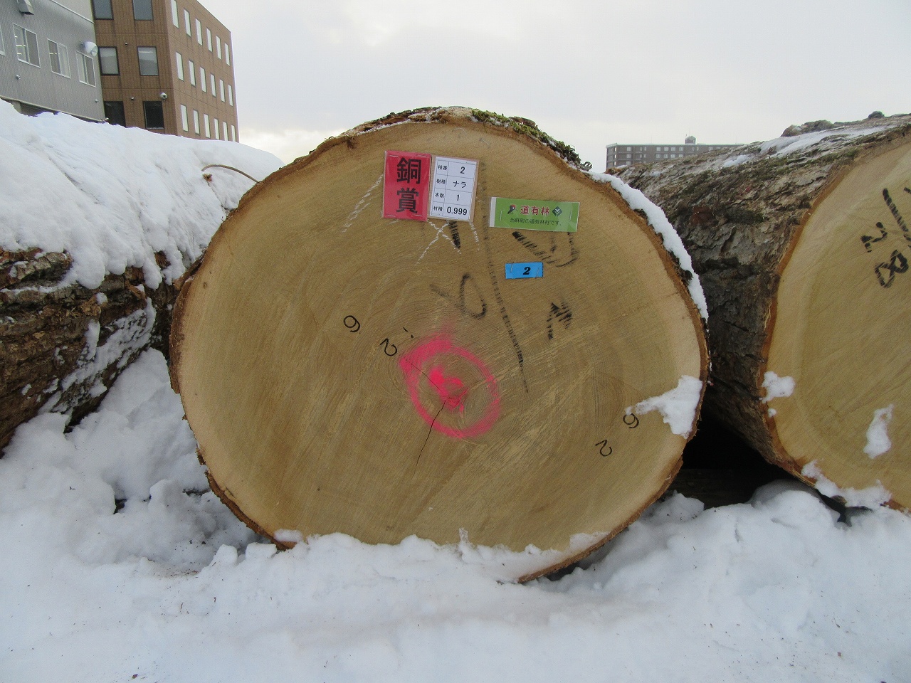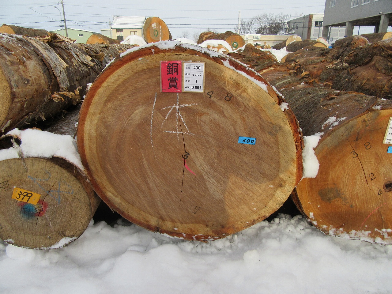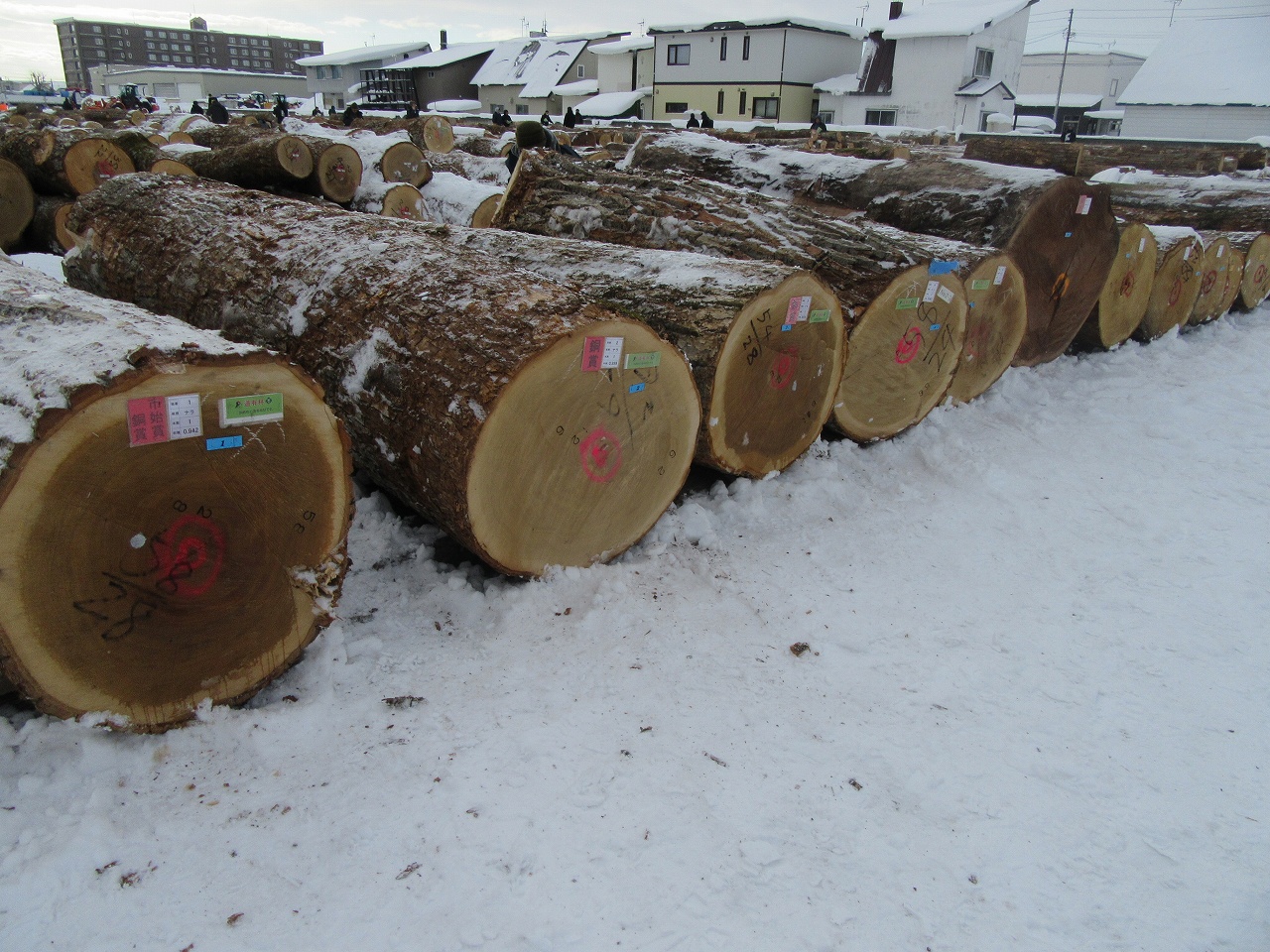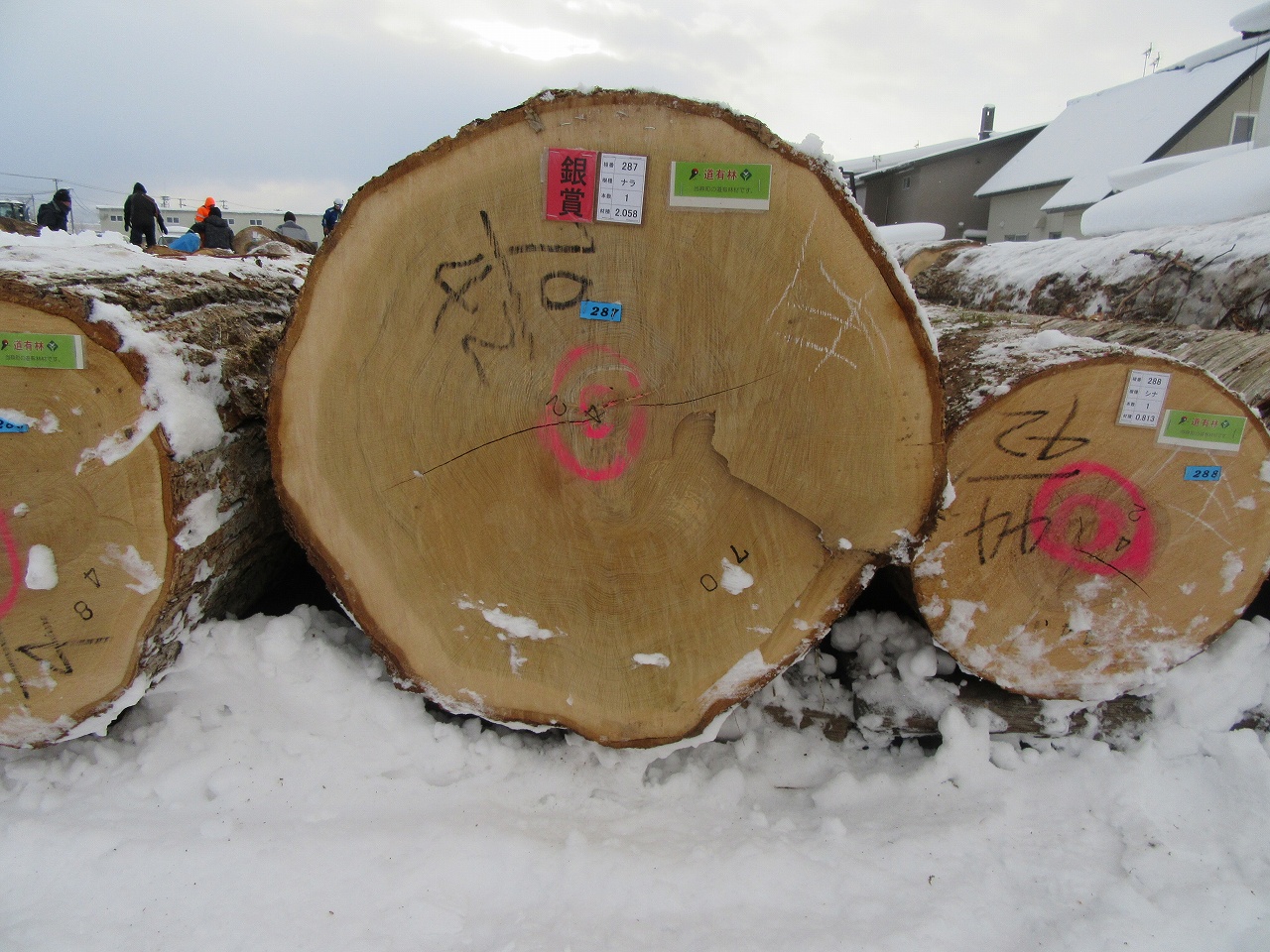 今年最後の銘木市が12月19日(金)に開催され、北海道大学演習林、国有林、民間材あわせて1,589㎥の出品がありました。