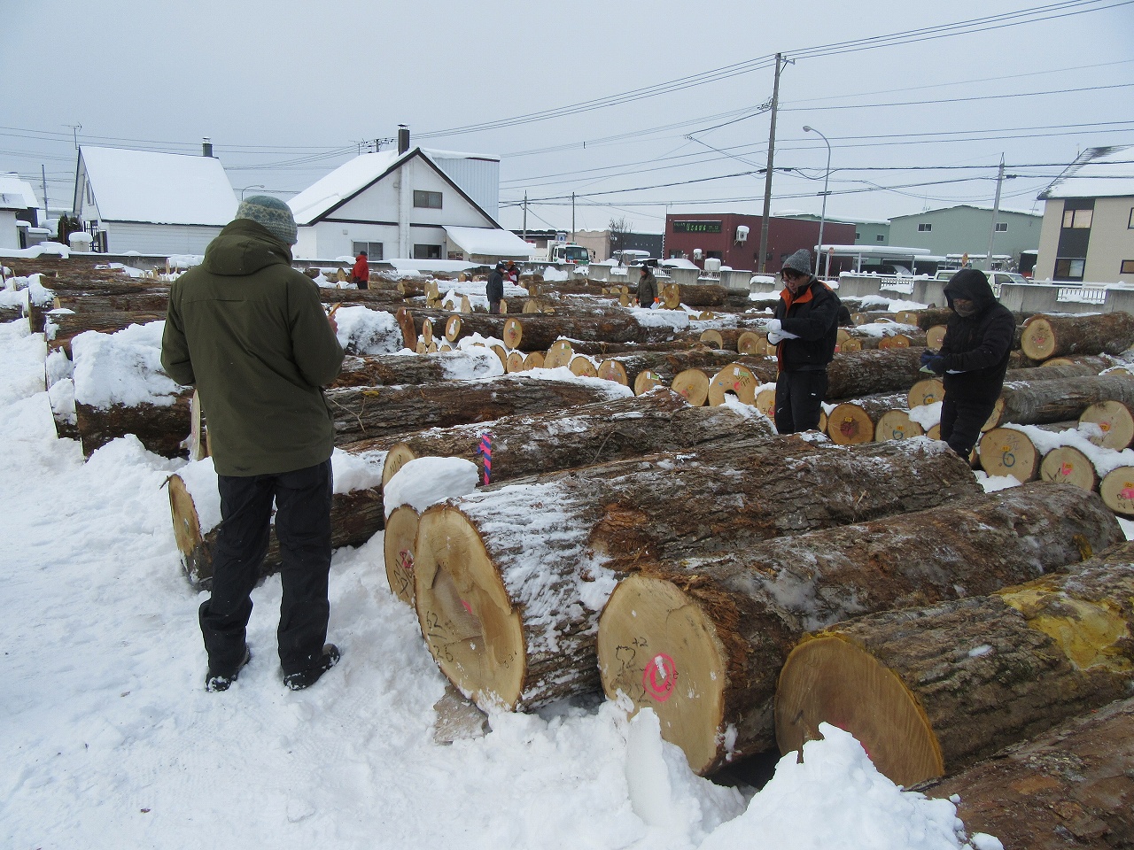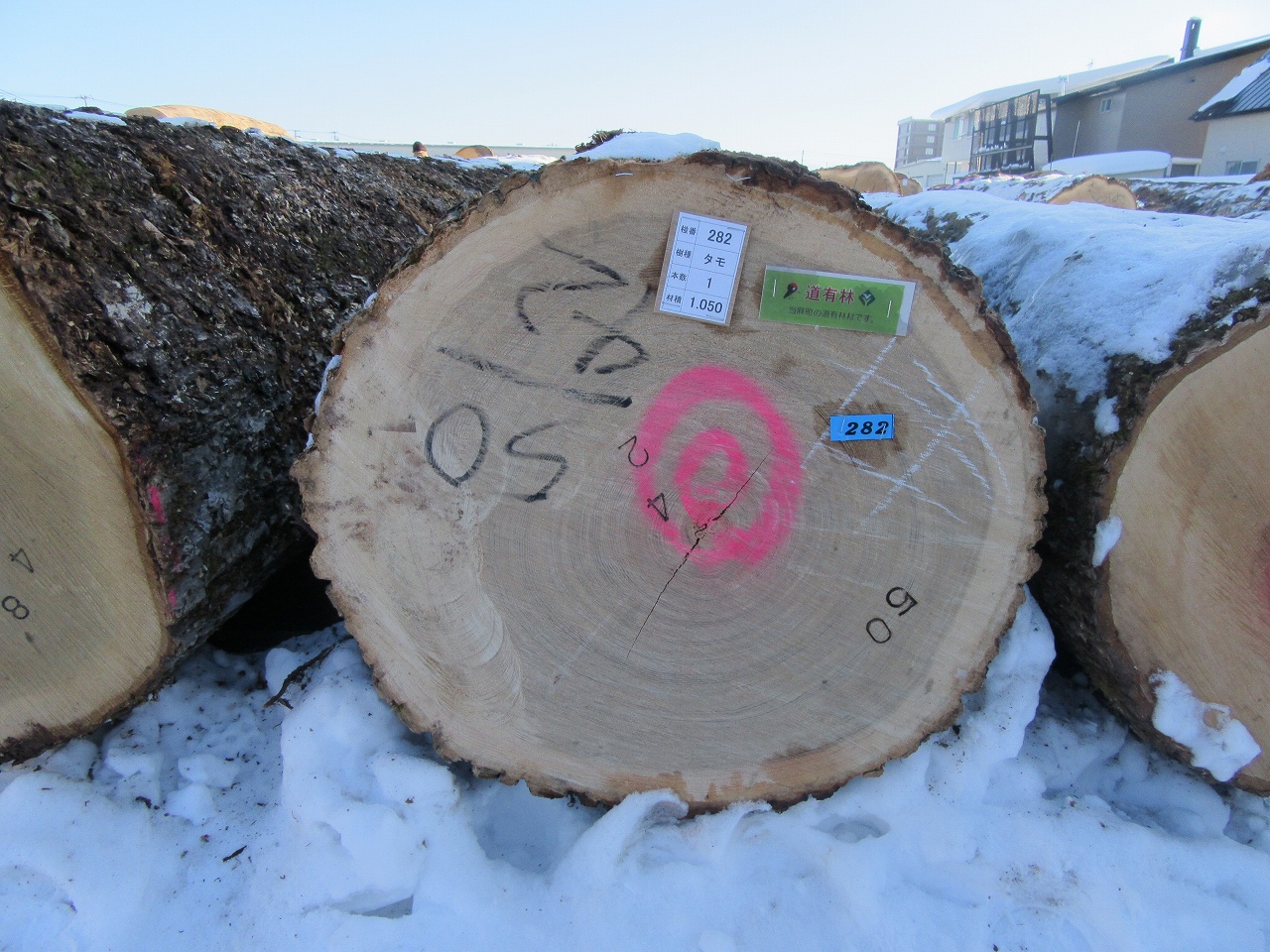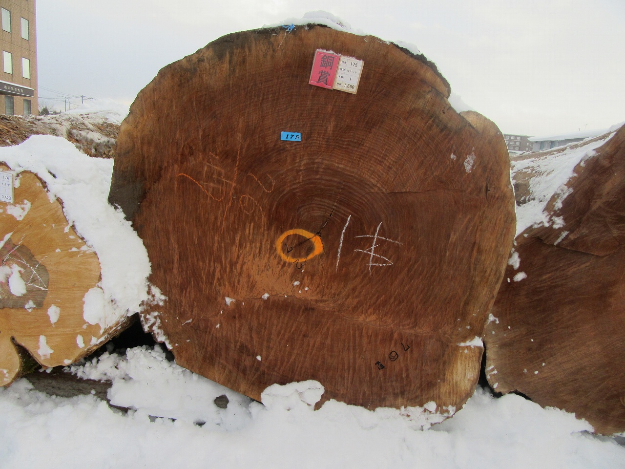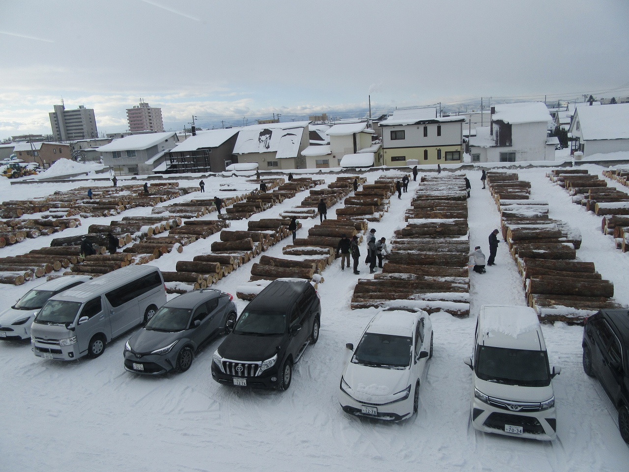 今年最後の銘木市が12月19日(金)に開催され、北海道大学演習林、国有林、民間材あわせて1,589㎥の出品がありました。