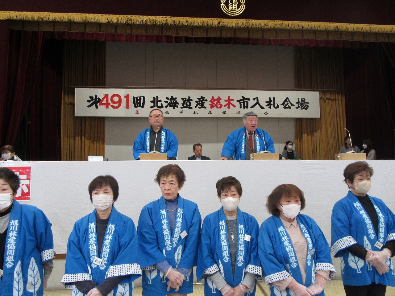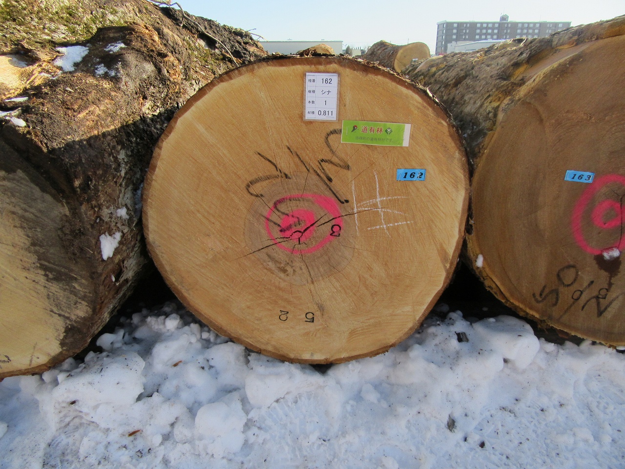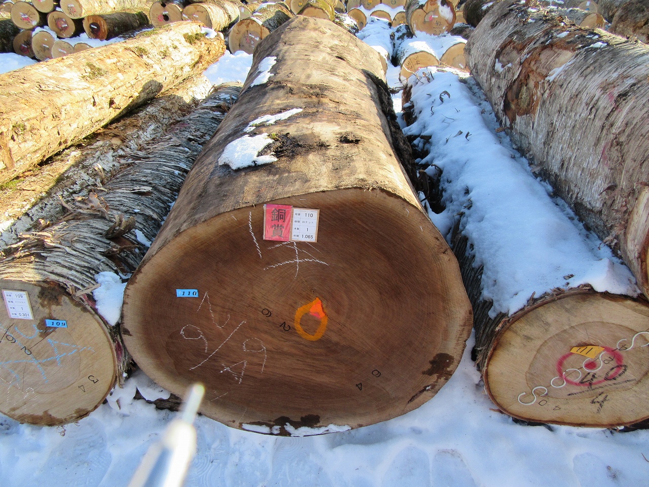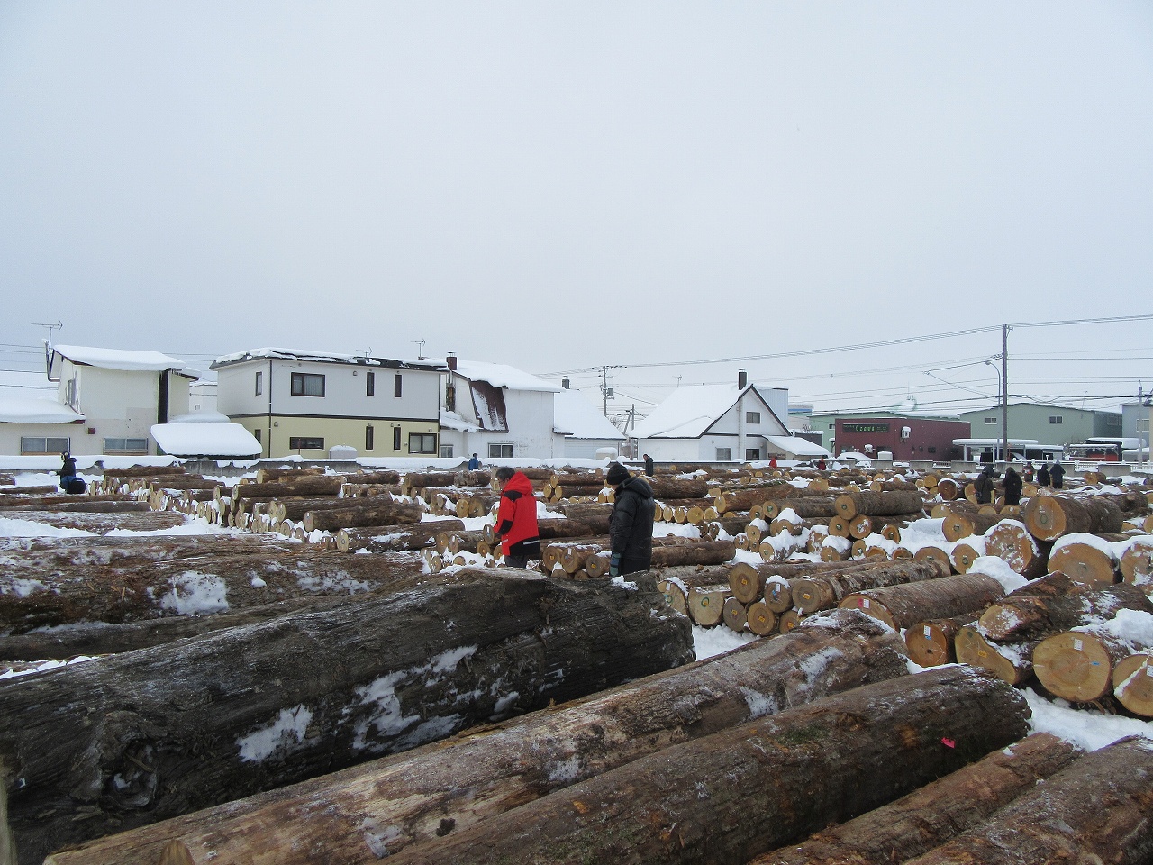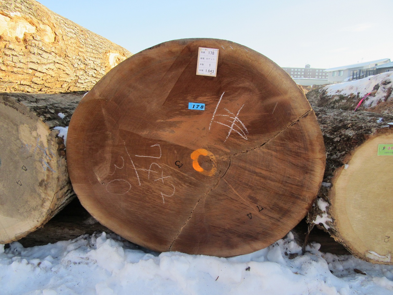 今年最後の銘木市が12月19日(金)に開催され、北海道大学演習林、国有林、民間材あわせて1,589㎥の出品がありました。