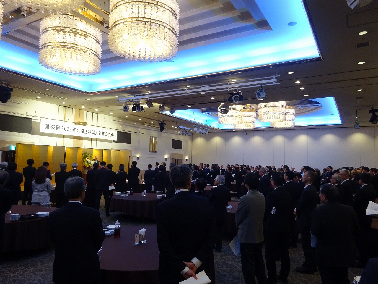 第63回 北海道林業人新年交礼会 2026年1月19日 最終更新日時 : 2026年1月19日 asamoku令和8年1月14日「令和8年 第63回『北海道林業人新年交礼会』」がポールスター札幌で開催されました。全道各地から森林・林業に関係する団体から多数の出席がありました。道木連 三津橋会長の年頭あいさつに続き、鈴木知事、北海道森林管理局 関口局長など多くのご来賓の祝辞をいただき2026年がスタート致しました。