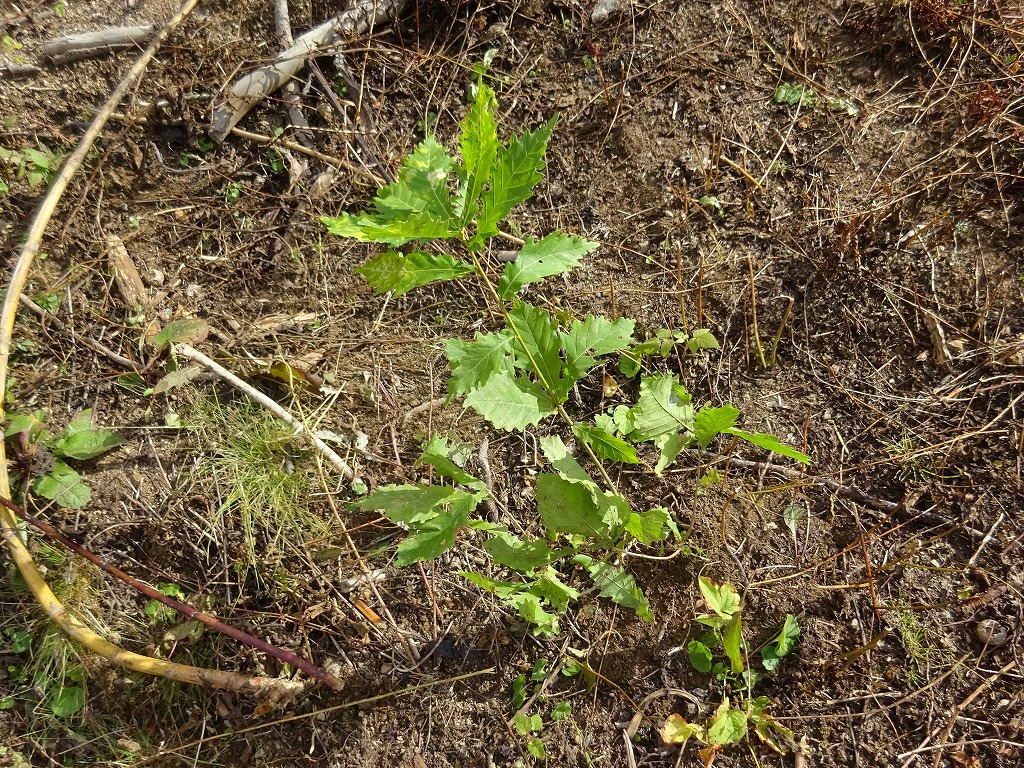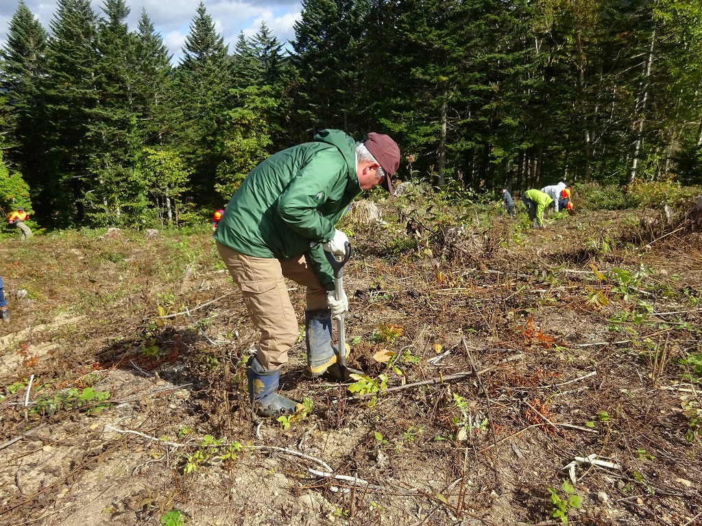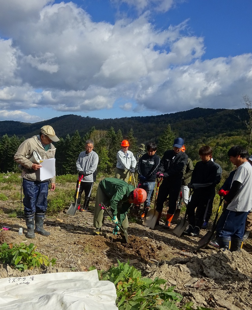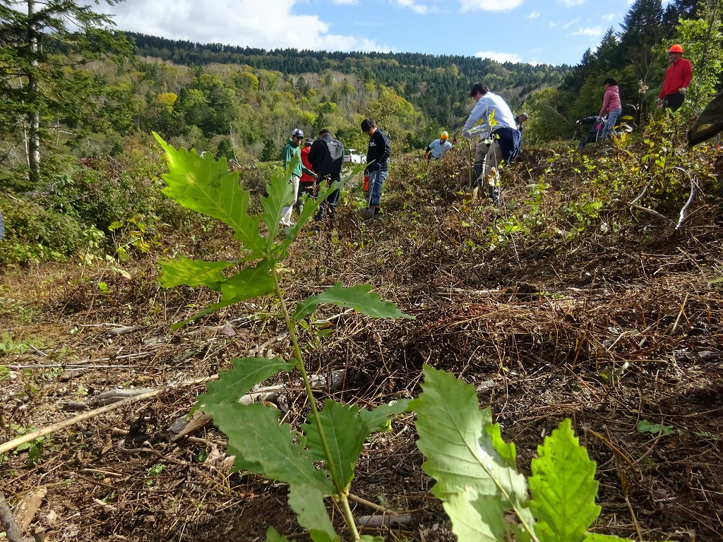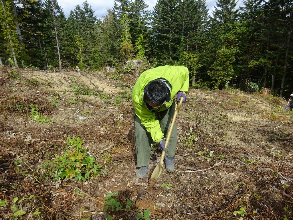 地盤が固く掘る作業に苦戦しながらも、用意したミズナラの苗木1,050本すべて植え付けることができました。